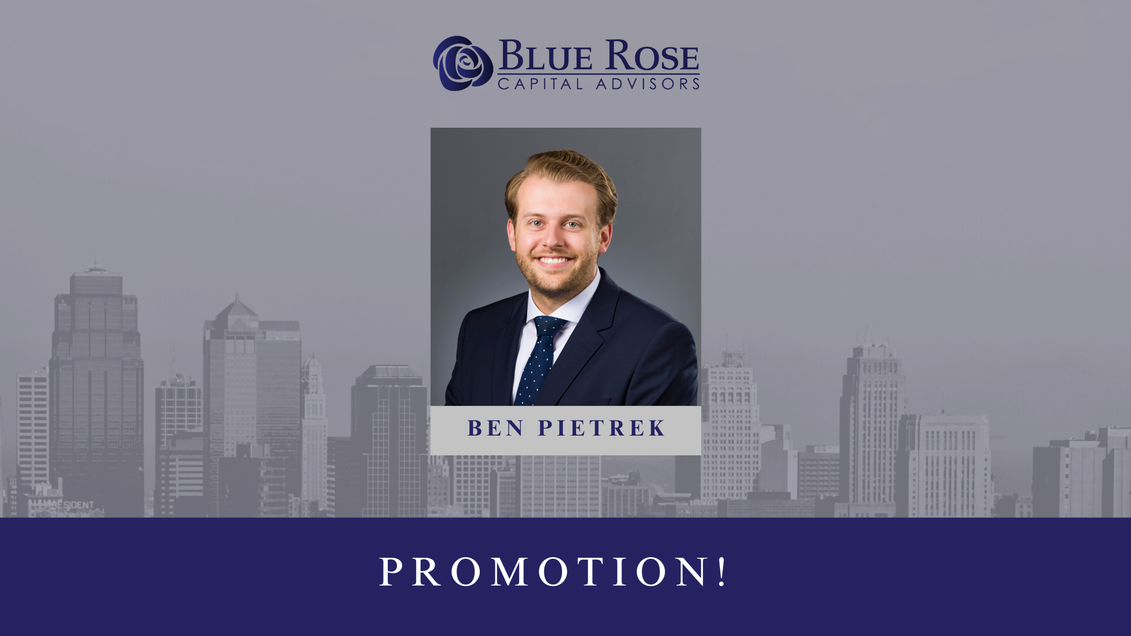 We are pleased to announce that Ben Pietrek has been promoted to Assistant Vice President at Blue Rose Capital Advisors. In his new role, Ben will take on expanded client management responsibilities and ensure transactions are executed smoothly from start to finish.
